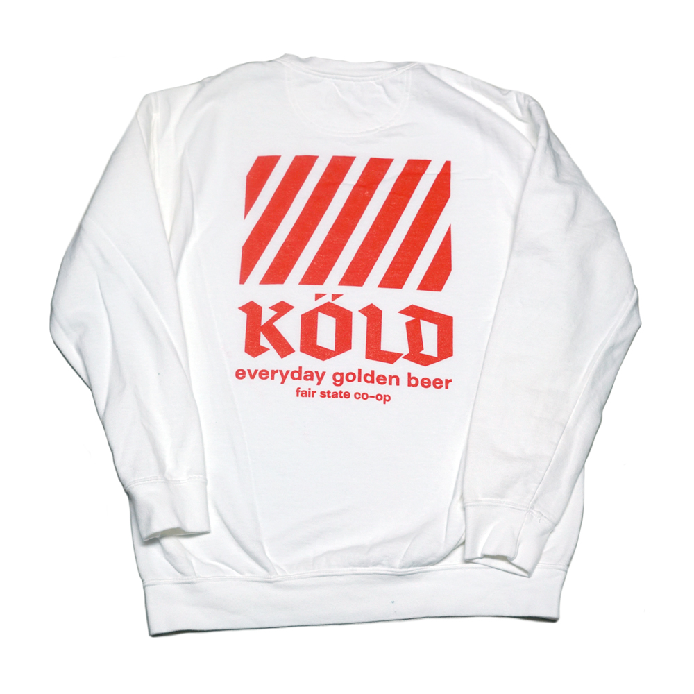 A crisp and cozy white crewneck sporting your new favorite everyday beer.